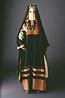 Rashaidah thobe with patchwork decoration on the front, back and the right sleeve. The long burqu' (face mask) is embroidered with silver thread and has a fringe. more