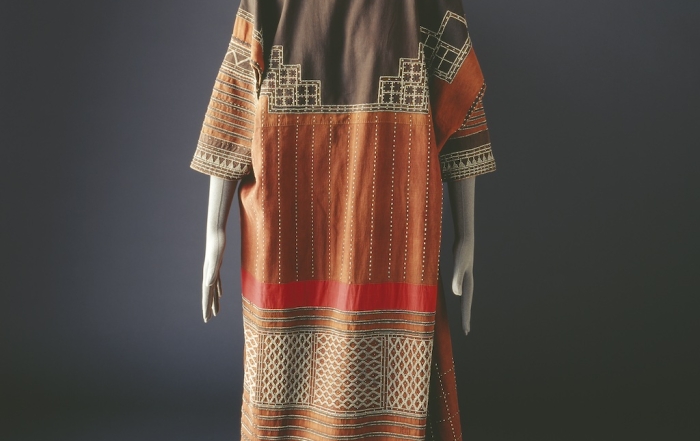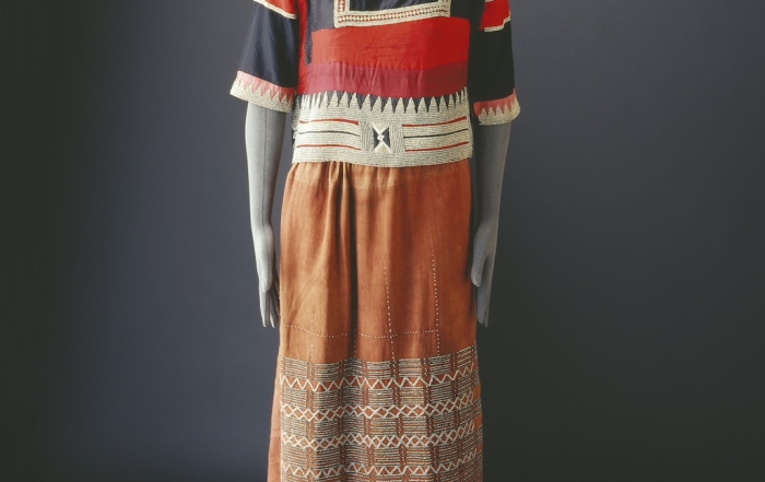 The Jahdaly tribe Description of Costume: Jahdaly drawstring skirt and blouse both decorated with metal beads. The edge of the rectangular headers is embroidered with metal beads and has a cotton fringe. Location: Lith, Hijaz, Western Region The Jahdaly tribe inhabits an area of wadis draining down to the coastal plain between the holy city of Makkah and al-Lith on[...]