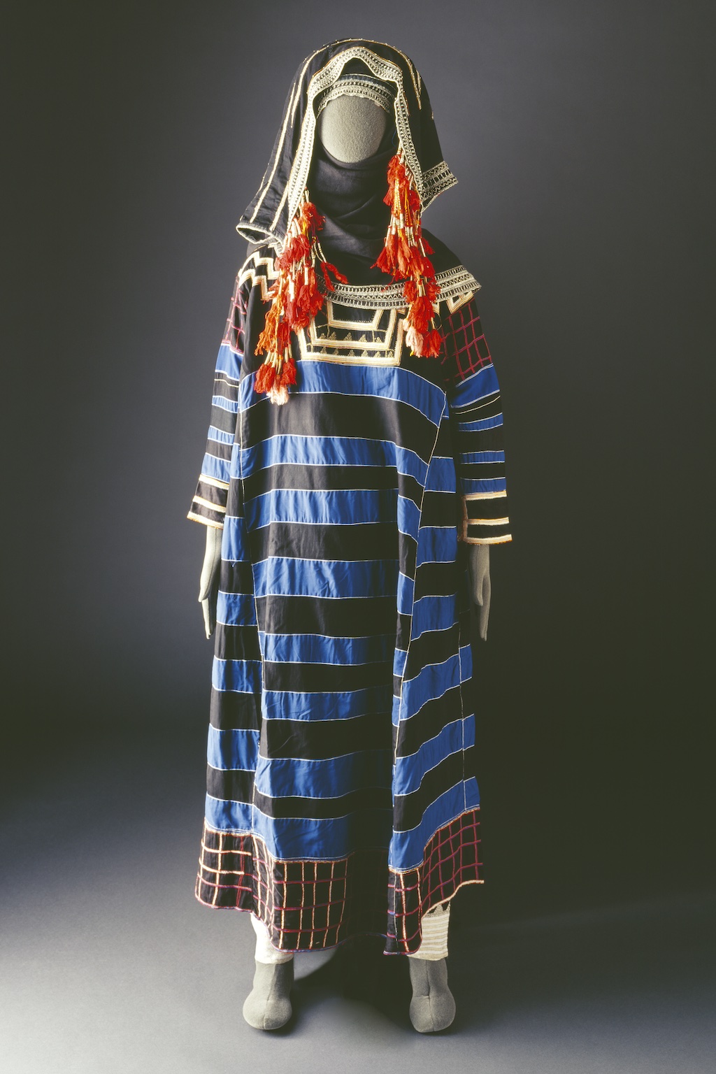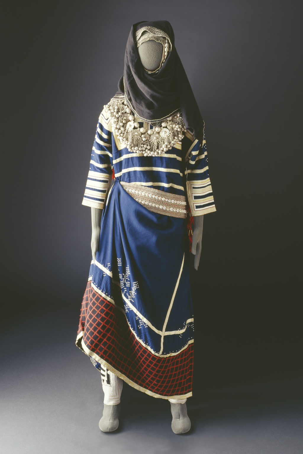 Hijaz, Western Region Hijaz milayah large rectangular wrap worn to go out. It is made of two panels with decorative bands and tassels along the edge. The silk fabric was either imported from India or Indonesia. The Ka‘bah at Makkah (first established at the time of the prophet Abraham) is for Muslims the “Bait Allah” or “House of God”. It[...]