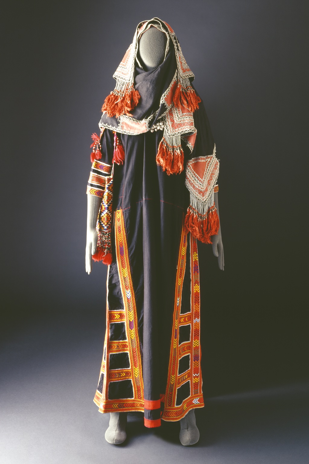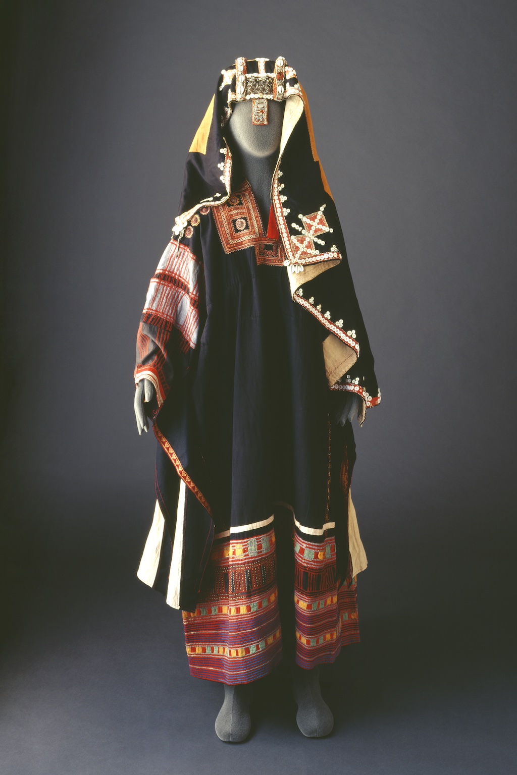 Hijaz, Western Region Hijaz boys' fine silk velvet coat embroidered with sequins and gold thread. This type of garment was worn for traditional festivities. The Ka‘bah at Makkah (first established at the time of the prophet Abraham) is for Muslims the “Bait Allah” or “House of God”. It is the most sacred spot on Earth, and, with Mount Arafat a[...]