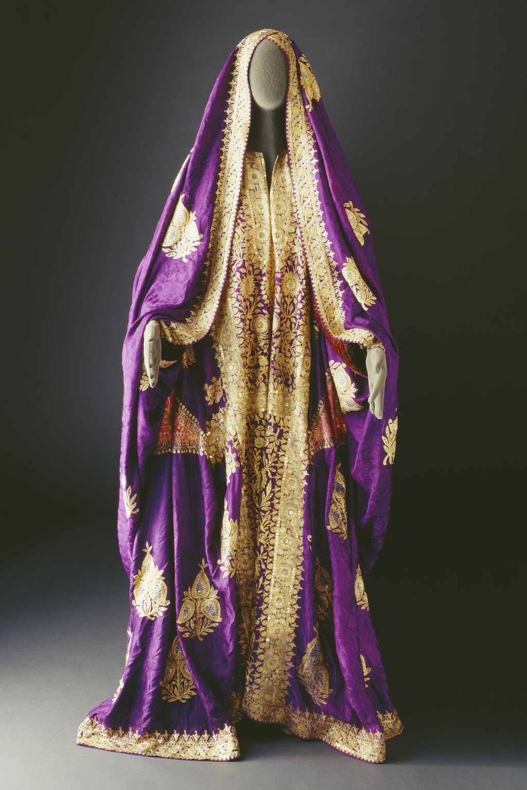 Hijaz, Western Region Hijaz ensemble with the inner fitted zaboon embroidered in a floral design with gold thread and small sequins. The outer thobe is made of a sheer linen-like fabric. The Ka‘bah at Makkah (first established at the time of the prophet Abraham) is for Muslims the “Bait Allah” or “House of God”. It is the most sacred spot[...]