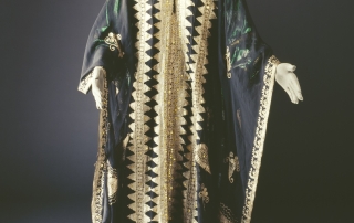 Najd and Central Region Najd, Central Region and Eastern Region thobe of fine Indian silk embroidered with sequins and gold thread. The sleeves are voluminous and are brought around to[...]
