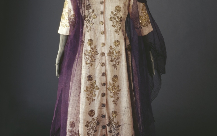 Hijaz, Western Region Hijaz milayah large rectangular wrap worn to go out. It is made of two panels with decorative bands and tassels along the edge. The silk fabric was either imported from India or[...]